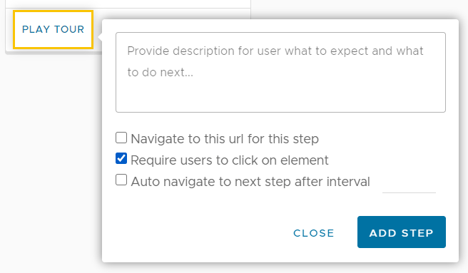 You can now proceed to recording the steps of the tour you are building. When you hold down the Ctrl button, a yellow highlighter box will wrap around the elements as you move your mouse over them like this.
