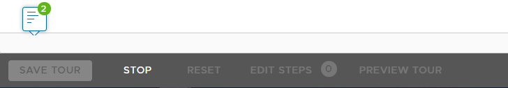 As you can see, you use the Ctrl button to highlight an element and the Ctrl+Alt+D to provide the text about that element. This is the text that makes it into the tour. Once you click Start Recording you will see a number of options pop up in the lower left corner as well as a Stop Recording button in the lower right.
