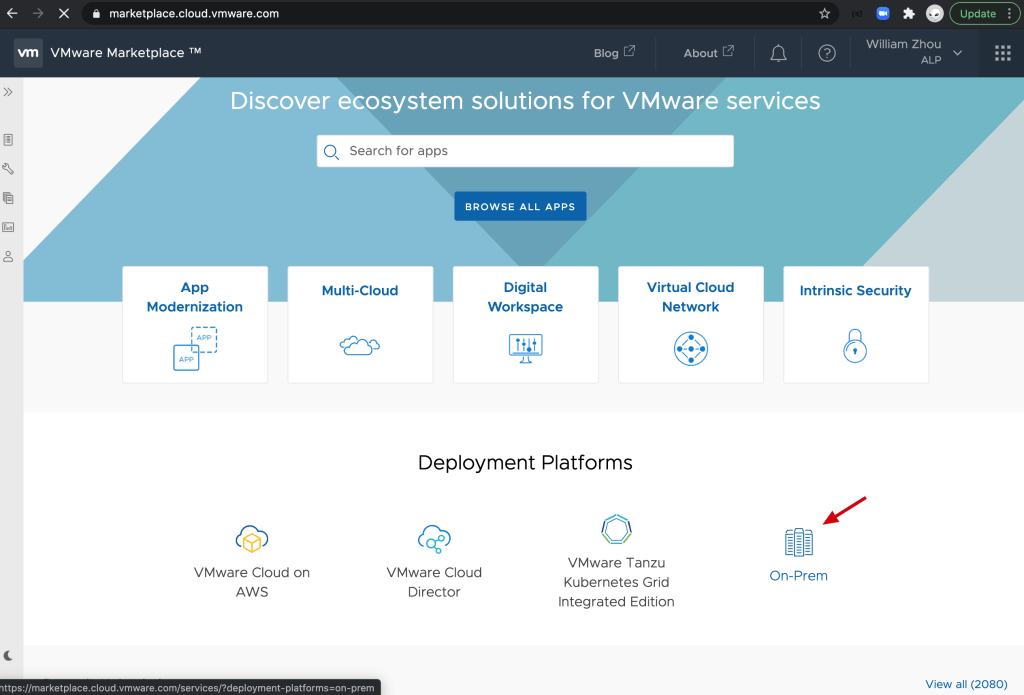 Step 1. Get logged into the VMware Marketplace. The link is here. Then browse to On-Prem applications.